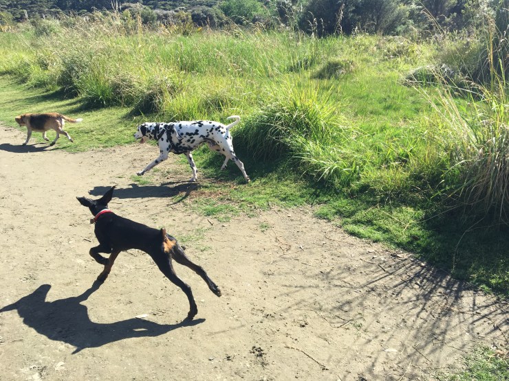 We carefully match small groups of no more than dogs four dogs for walks at the beach, bush or dog friendly parks in West Auckland.